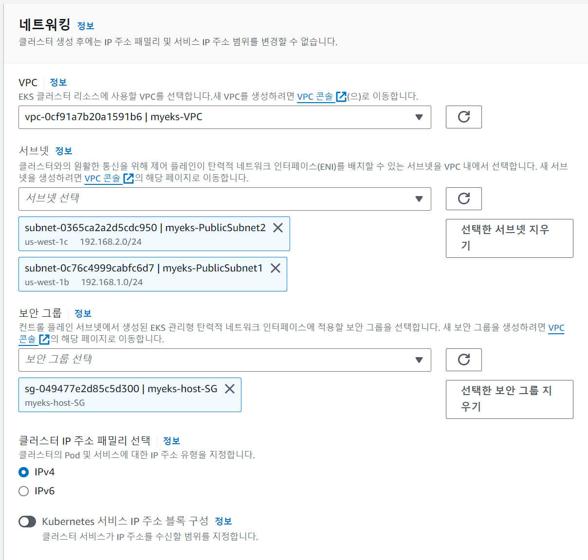 ✅ eks > 클러스터 생성 > 이름 : myeks