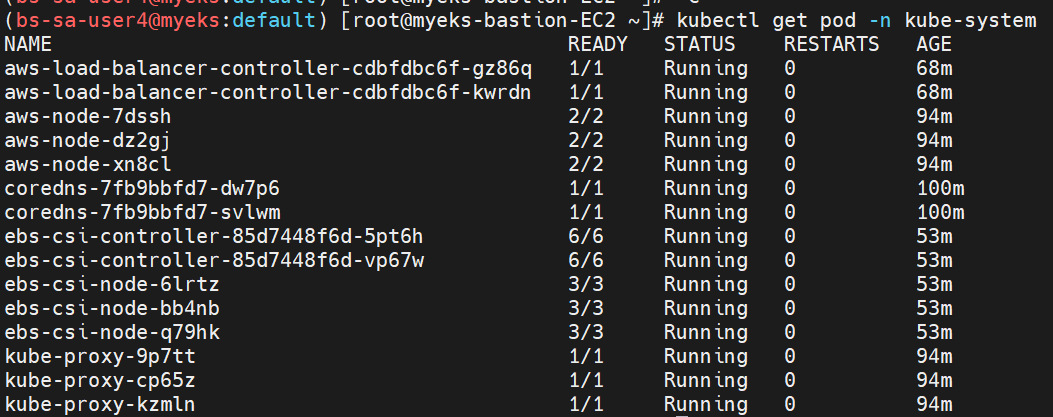 (bs-sa-user4@myeks:default) [root@myeks-bastion-EC2 ~]# kubectl get pod -n kube--system | grep ebs-csi