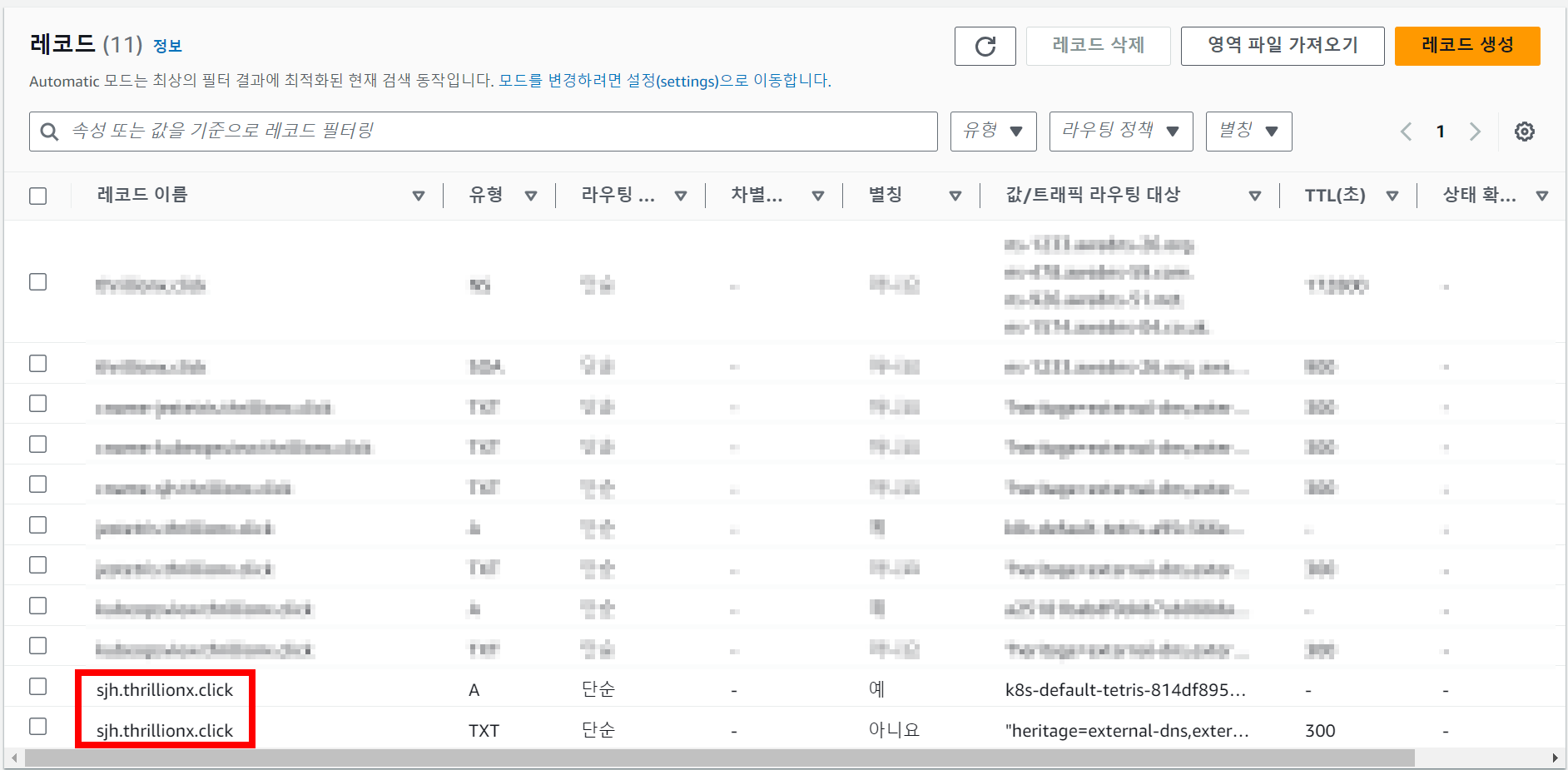 (bs-sa-user4@myeks:default) [root@myeks-bastion-EC2 ~]# kubectl annotate service tetris "external-dns.alpha.kubernetes.io/hostname=SJH.thrillionx.click"